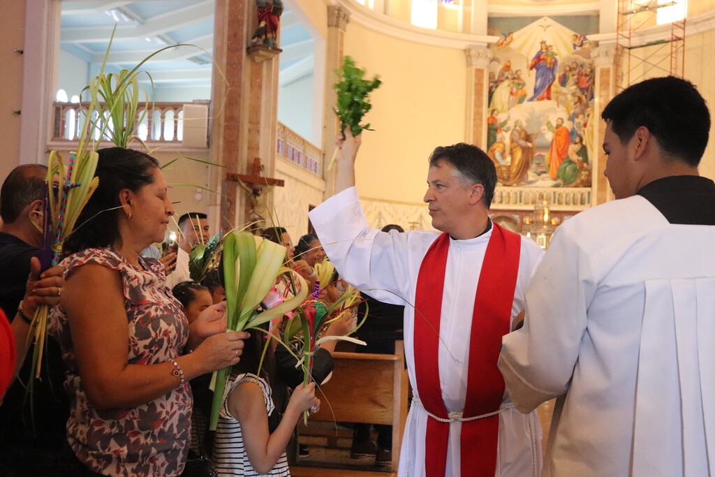 Al finalizar la Eucaristía, el padre Anael Pascual, SDB, realizó una segunda bendición de palmas, permitiendo que más fieles pudieran recibir este signo sacramental, propio de esta importante celebración.
