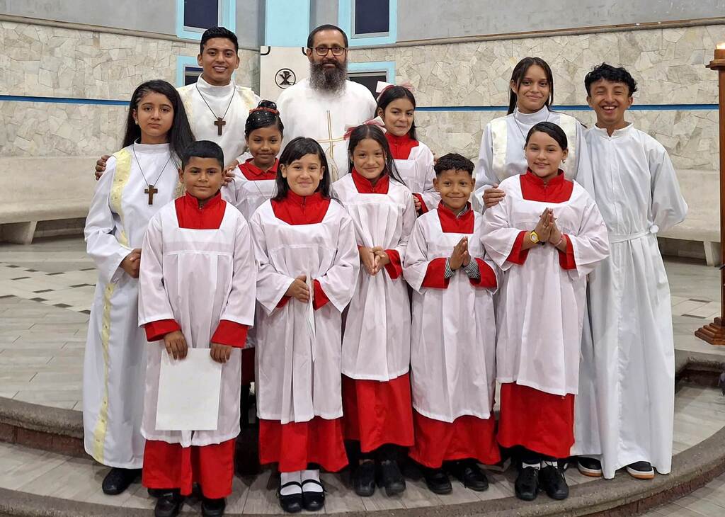 Comayagüela, Honduras, junio 2025.– El monaguillo es un servidor del altar, un joven llamado por Dios a colaborar con alegría en la liturgia y a ser testigo de fe en su comunidad. Este domingo 22 de junio, en la Sede Parroquial María Auxiliadora, ocho niños y adolescentes de la zona Sagrado Corazón de Jesús realizaron su primera promesa como monaguillos durante la eucaristía vespertina, presidida por el padre René Guzmán, SDB. Acompañados por sus padres, familiares y miembros de su comunidad, los nuevos monaguillos fueron invitados, durante la homilía, a servir con amor, generosidad y entrega, tomando como ejemplo a santo Domingo Savio. El padre René también exhortó a los padres a acompañar a sus hijos en este camino de fe, animándolos a participar activamente en las eucaristías y en las actividades del equipo de monaguillos. Ver más fotografías aquí.
