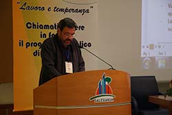 Roma, marzo 2014.- El P. Manuel Cayo, Inspector de Argentina Norte, con la ayuda de algunas diapositivas, en la mañana del lunes 10 presentó a los Capitulares el Instrumento de trabajo,