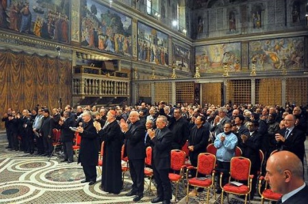 Por la tarde, dirigidos por el Prof. Enrico Bruschini, los Capitulares pudieron visitar la Capilla Sixtina, donde participaron del Concierto Concerto "Super fundamentum apostolorum - el año litúrgico en la tradición musical de las Celebraciones Pontificias" a cargo de la Capilla Musical Pontificia llamada "Sixtina", dirigida por el salesiano P. Massimo Palombella. Una serie de cantos polifónicos fueron magistralmente ejecutados: canto Gregoriano, Perosi, Pierluigi da Palestrina, y dos ejecuciones musicales al órgano por parte del maestro Juan Paradell Solé.