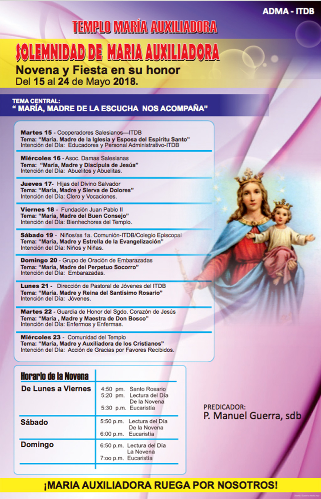 Panamá: 15 al 24 de mayo. Novena a María Auxilidora