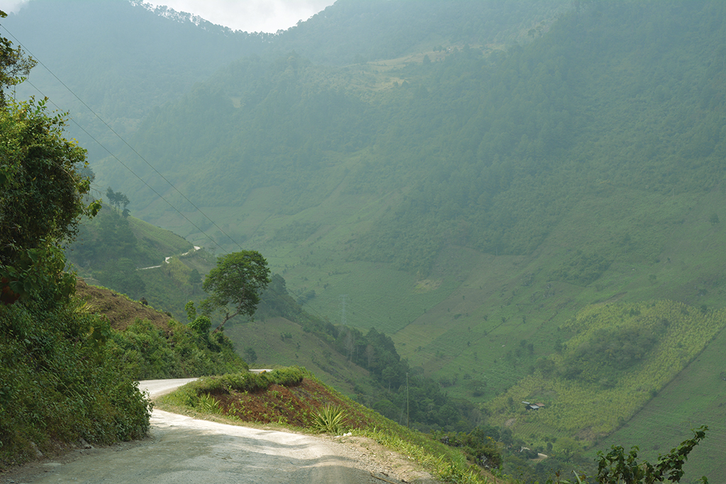 El ascenso es lento, riesgoso, infinito. ¿Cuándo terminará esto? Llegar a la cima ofrece poco consuelo. Hay que descender. Por suerte, ese trayecto es menos largo. Pero el camino empeora. Paciencia y pericia, y otra vez comienza el desfile de casas milagrosamente agarradas a las laderas empinadas. Aparecen también aldeas formadas por casas diseminadas con la común marca dolorosa de la pobreza.