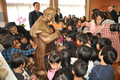 La peregrinación de las reliquias de Don Bosco en Japón está recorriendo las casas de los salesianos, de las Hijas de María Auxiliadora (FMA) y de las Hermanas de la Caridad de Jesús (SCG). A diferencia de las etapas precedentes, las reliquias no están en una urna sino colocadas en una estatua de fibra de vidrio que representa el fundador de los Salesianos circundado de muchachos, diseñada por el escultor Mauro Baldessari. En la base se conserva el brazo diestro del santo. Ya en el pasado abril – las reliquias – la mano y el brazo diestro – fueron colocadas en una urna más ligera y manejable, pero símil a la precedente. La mano diestra se conserva en la urna que en estos días permanece en Vietnam.