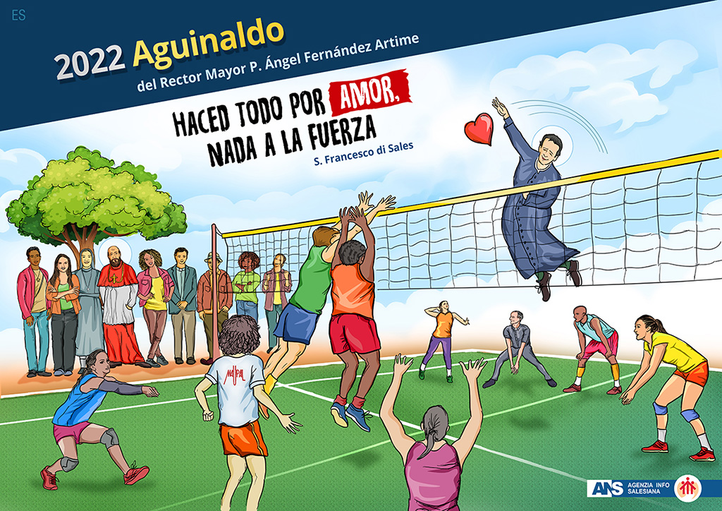 ANS, Roma, noviembre 2021. - "Haz todo por amor, nada por fuerza" es el tema que el Rector Mayor, el padre Ángel Fernández Artime, ha elegido para afiche del Aguinaldo de 2022, inspirado en San Francisco de Sales, con motivo del 400 aniversario de su muerte.