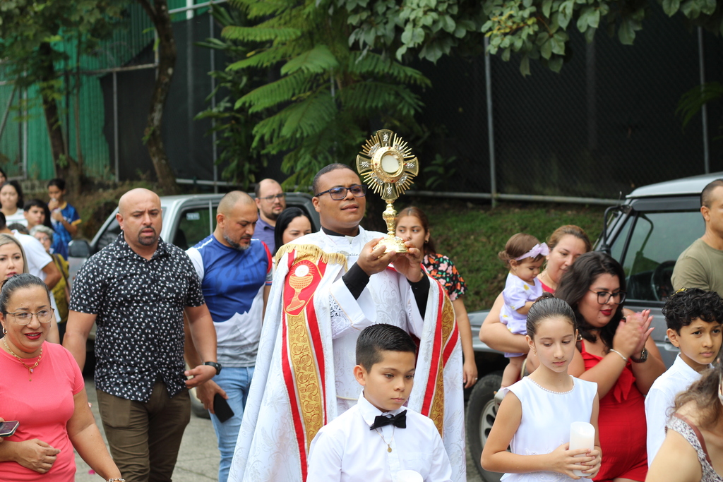 El día domingo se llevó a cabo una procesión con los jóvenes, niños y familias del Centro Don Bosco, en la cual los niños y niñas decoraban con pétalos de flores el camino del Santísimo. Asimismo, se celebró la Santa Eucaristía, presidida por el padre Jean Paul Bethancourt, SDB, quien en su homilía recordó que la Eucaristía es el gran regalo de Cristo para todos.