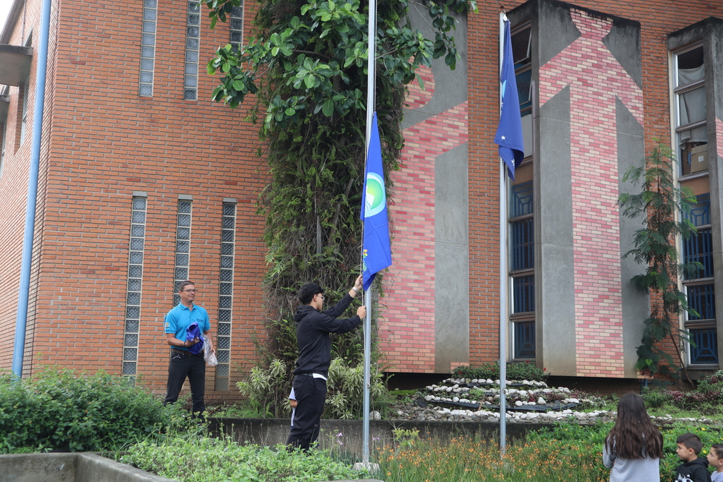 San José, junio 2025.- Esta semana, en el espacio de “Buenos Días” del colegio, se llevó a cabo el acto de izada de la Bandera Azul Ecológica 2024 para Centros Educativos, un reconocimiento que refleja el esfuerzo y compromiso ambiental de toda la comunidad de CEDES Don Bosco.