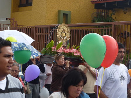 Costa Rica, San José, julio 2011.- El sábado 16 de julio, representantes de los distintos grupos de la Familia Salesiana se hicieron presentes en las conocidas Ruinas de Cartago, para salir en procesión, junto con una réplica de la imagen de la Virgen de Los Ángeles, hacia la Basílica.