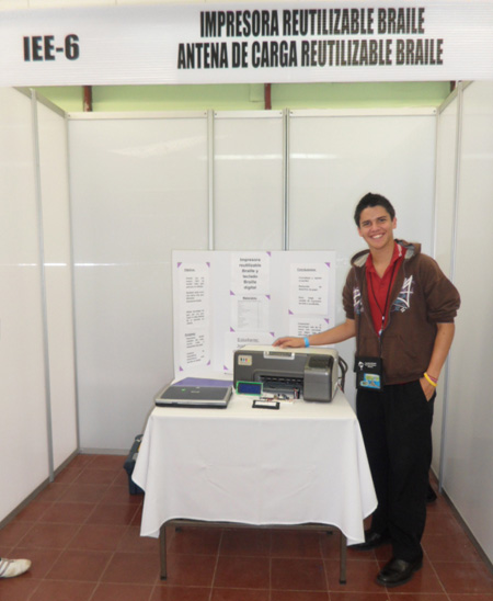 También el joven José Miguel González, de 6to. año del Colegio Técnico Don Bosco, ganó el primer lugar en la categoría de electrónica con una impresora para textos en braille que emplea bolitas de confitura para darle el relieve de ese lenguaje.