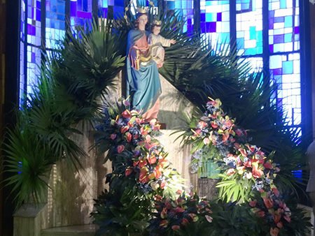 San José, mayo 2014.- Centenares de personas participaron en la misa solemne en honor a María Auxiliadora el sábado 24 de mayo en el Templo Don Bosco, ocasión en que se conmemoró los 200 años de la instauración de esta fiesta mariana.