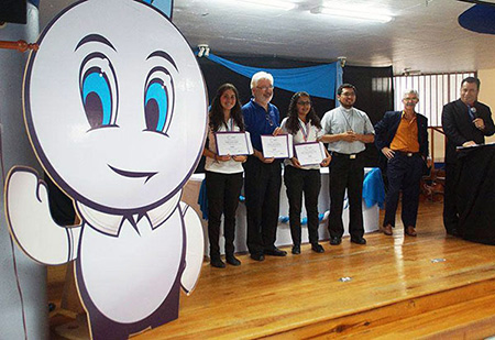 Alajuelita, diciembre 2014.- Los ganadores de la Feria de Ciencia, Ingeniería y Artes de CEDES Don Bosco fueron ovacionados por invitados especiales, patrocinadores, alumnos y profesores del Centro Educativo durante el acto de premiación de EXPOTEC 2014.
