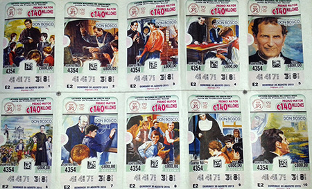 San José, Costa Rica, septiembre 2015.- La Lotería Nacional del domingo 30 de agosto fue dedicada al Padre y Maestro de los jóvenes con motivo del bicentenario de su nacimiento, lo cual permitió estar presente en todo el territorio nacional.
