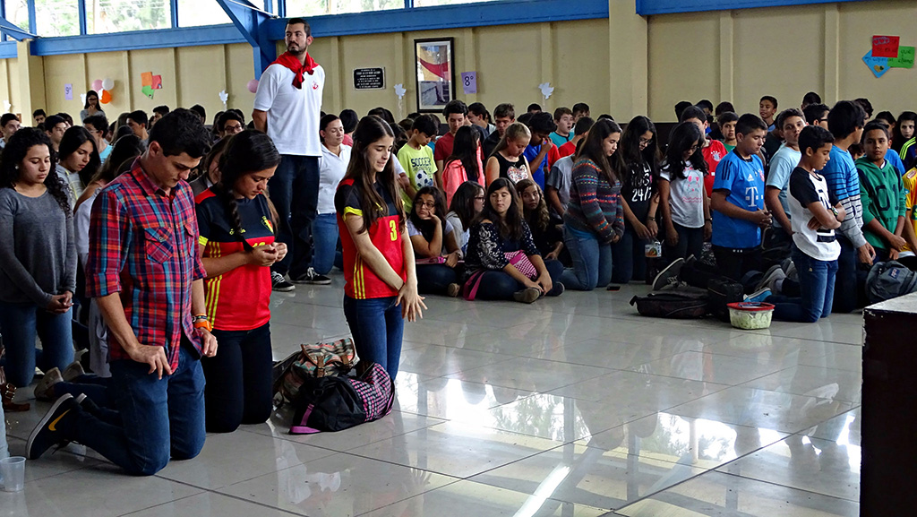 El jueves 5 de mayo los estudiantes de décimo año junto al equipo de pastoral fueron los encargados de organizar cada detalle de la pascua juvenil. Para iniciar reunieron a todo el estudiantado de secundaria en la iglesia del centro para compartir la misa, animada por un coro de estudiantes y presidida por el Padre Julio Navarro, director del colegio. Luego pasaron a compartir la merienda matutina y se prepararon para compartir el espacio de reflexión.