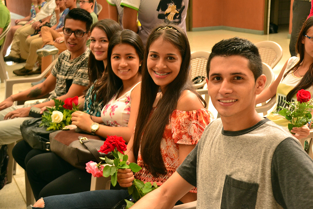La celebración eucarística comenzó con la procesión de los jóvenes del programa EJE quienes llevaban una rosa para ofrecer a la madre del cielo. El padre Sixto ofreció una reflexión con el sueño de Don Bosco de las dos columnas para celebrar a María y Corpus Christi.