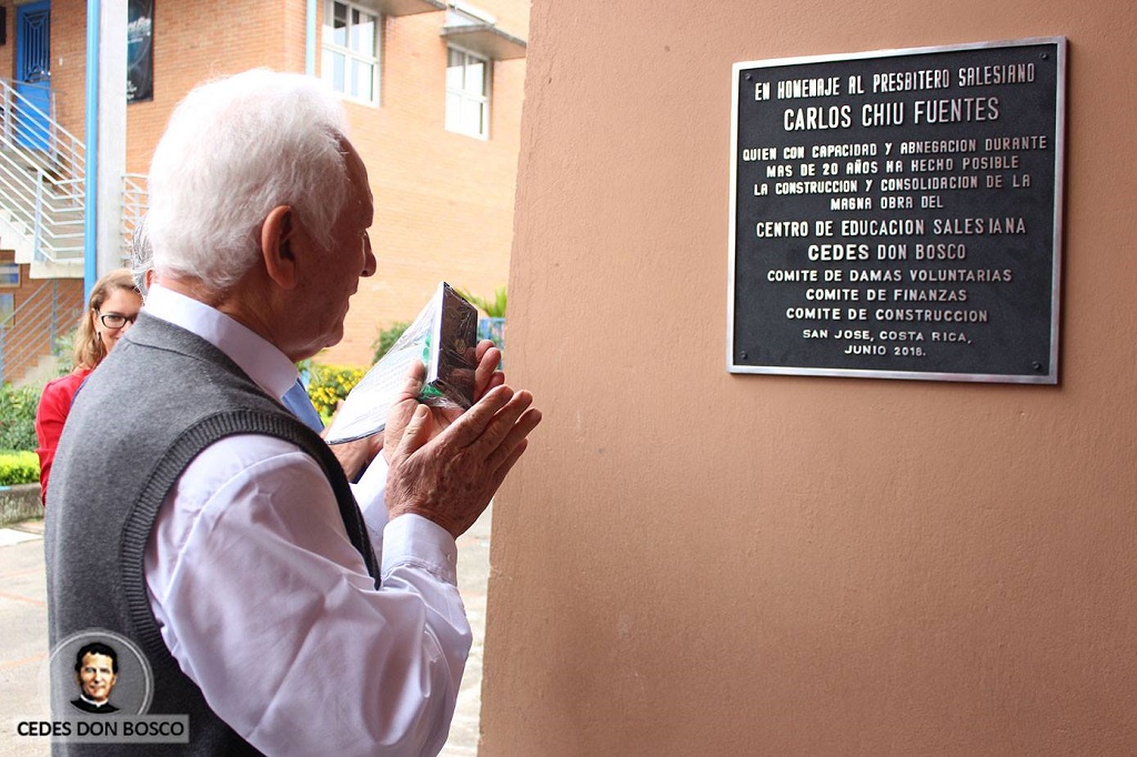 Alajuelita, Costa Rica, junio del 2018.- El lunes 11 de junio el Padre Carlos Chiu Fuentes, fue homenajeado por la labor que ha realizado con gran capacidad y abnegación, en pro de la construcción y consolidación del Centro de Educación Salesiana, CEDES Don Bosco.
