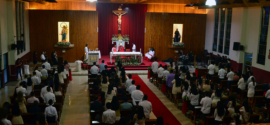 Costa Rica, julio 2018 - Este año se han preparado en la obra salesiana de Cartago más de 160 jóvenes para el sacramento de la Confirmación. El grupo salesiano es de 83 jóvenes y algunos adultos. Han recibido el sacramento en el templo Don Bosco por la unción e imposición de manos del obispo emérito de Cartago Monseñor José Francisco Ulloa Rojas.