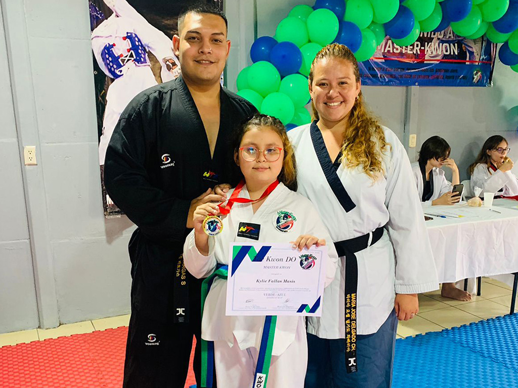 Una estudiante que desde pequeña destaca y se traza grandes metas por alcanzar. Con mucha disciplina, esfuerzo y con el apoyo de su familia, Kyllie practica Taekwondo desde los 6 años y entrena de lunes a jueves.