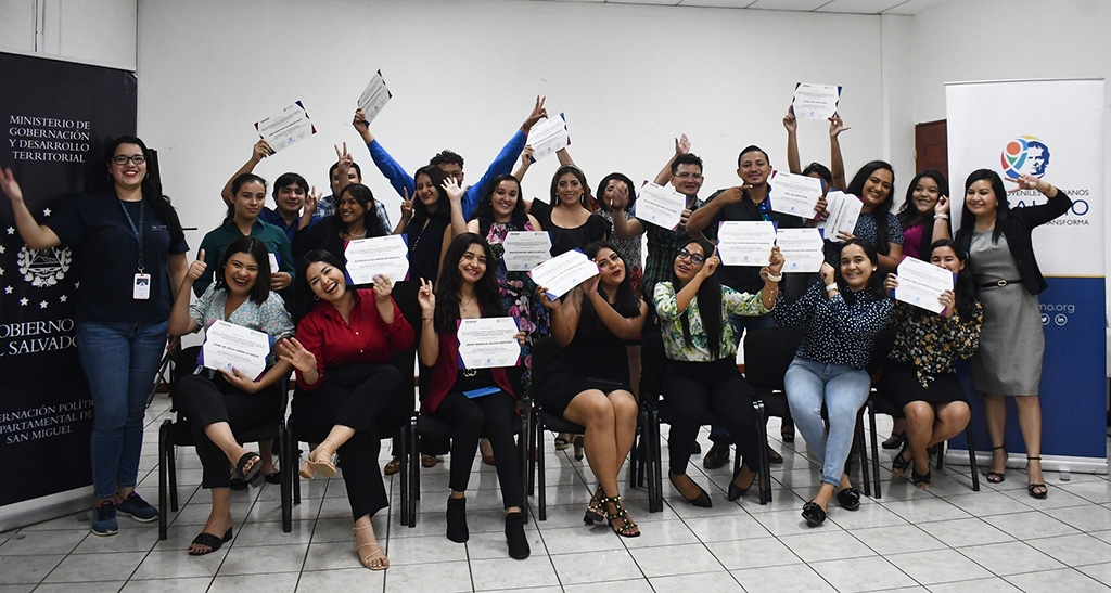 San Miguel, agosto 2023. - FUSALMO celebró la culminación del Curso de Cajero Bancario II como parte del "Proyecto Jóvenes Creando Futuro", respaldado por la Cooperación Suiza y Brücke Le Pont, e implementado por la Fundación Salvador del Mundo (FUSALMO).