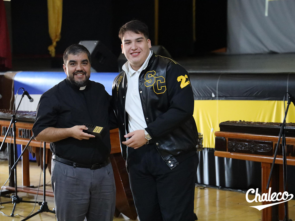 Cada nivel educativo le ofreció un acto de bienvenida. Tercer Ciclo y Bachillerato lo recibió al ritmo de la Marimba Alma Chaleca en el teatro; el presidente del consejo de estudiante, Nicolás Gómez, brindó unas palabras de acogida y le otorgó un obsequio en representación de todos los Chalecos.