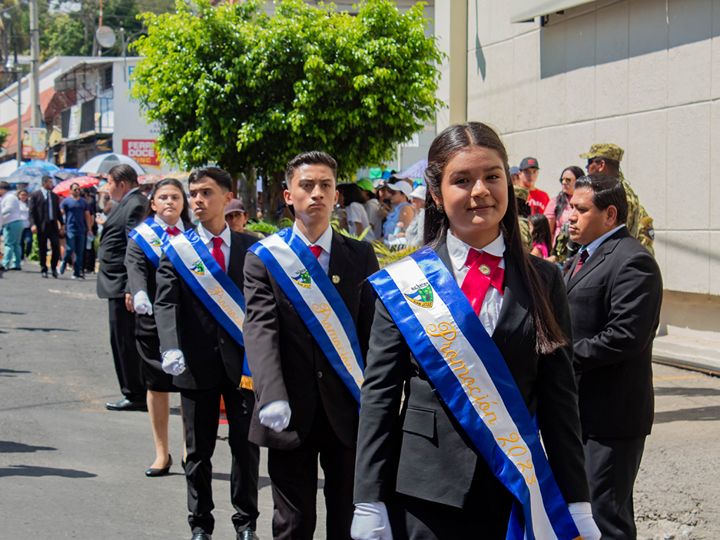 Santa Ana, septiembre 2023. - El Colegio Salesiano San José se destacó en el desfile cívico del 15 de septiembre en el departamento de Santa Ana, para celebrar el Día de la Independencia de El Salvador.