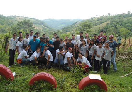 El Salvador, Soyapango, octubre 2011.- Una comisión representativa de estudiantes del Comunidad Educativa Santa Eduviges, Villa Alegre, Guayacán, Doctor Orlando De Sola, Juana López y Cordón Salguero que son parte del Polideportivo Don Bosco Soyapango participaron en el convivio de los novenos grados.