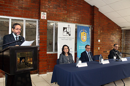 San Salvador, mayo 2014.- En un acto significativo para la educación superior de El Salvador, la Universidad Centroamericana José Simeón Cañas, UCA y la Universidad Don Bosco, UDB unen esfuerzos para contribuir con la formación de profesionales y académicos universitarios de primer nivel a través de la presentación deinnovadores programas:Maestría en Gerencia de Mantenimiento Industrial, Maestría en Ciencias Sociales y Doctorado en Ciencias Sociales.