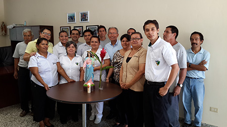 Santa Ana, mayo 2014.- A partir del cinco de mayo a las 12:40 del mediodía cada uno de los colaboradores pone una pausa a su trabajo. Ha llegado la hora de rezar el rosario. Esta es una iniciativa del personal administrativo del Colegio Salesiano San José.