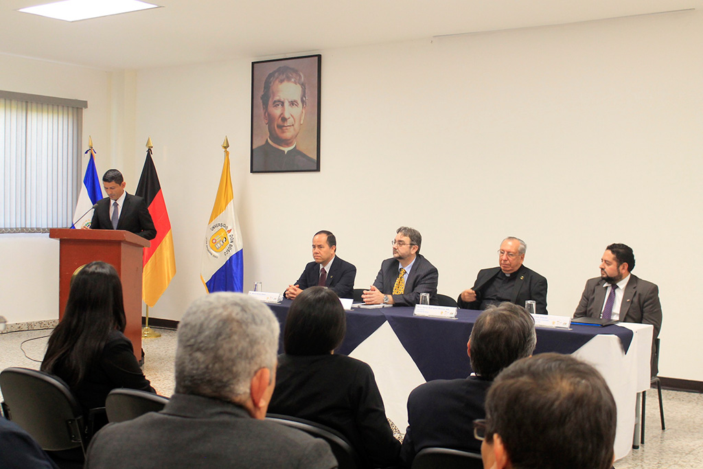 El evento fue presidido por el Pbro. Óscar Rodríguez Blanco, Vicepresidente de la UDB; Mario Rafael Olmos, Rector de la UDB; Sr. Dietmar Scholze, Gerente General de ITW-Chemnitz e Ing. Mauricio Chacón, Coordinador del Programa FACILIDAD de la cooperación alemana GIZ.