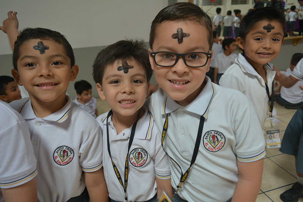 Santa Tecla 14 de febrero. Los estudiantes y personal del Colegio Salesiano Santa Cecilia celebraron el inicio de la Cuaresma con la imposición de la ceniza. Se realizaron dos eucaristías, la primera para los estudiantes de Tercer Ciclo y Bachillerato, que fue presidida por el padre director, Rodolfo Guzmán, sdb, quien les habló sobre el origen de la ceniza.