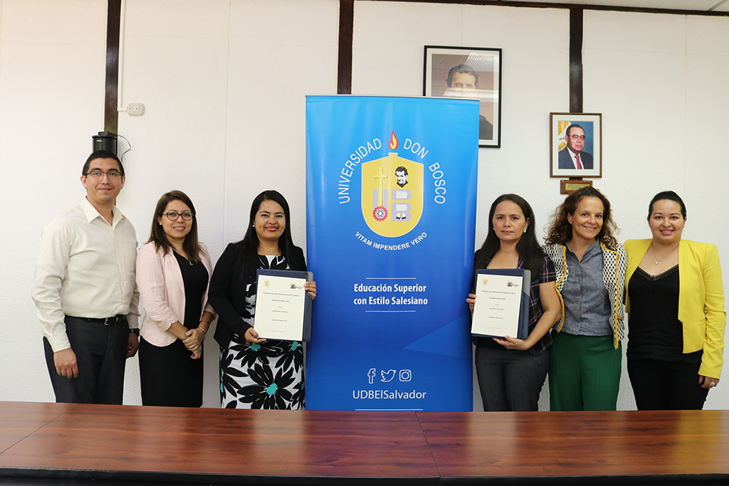 La firma del convenio se concretó en las instalaciones del campus universitario ubicado en Soyapango, ante la presencia de la secretaria general Xiomara Martínez; Karina Salguero, directora de proyección social UDB y Francisco Mira, colaborador técnico del programa de becas de la Universidad.