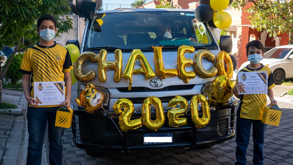 Por tres días consecutivos el microbús del Chaleco, vestido alegóricamente, recorrió las colonias de Santa Tecla en busca de los estudiantes con los mejores promedios 2020, esto con el fin de llevar un reconocimiento a los niños y jóvenes Chalecos que a pesar del año atípico por la pandemia del COVID-19 sobresalieron con sus calificaciones.