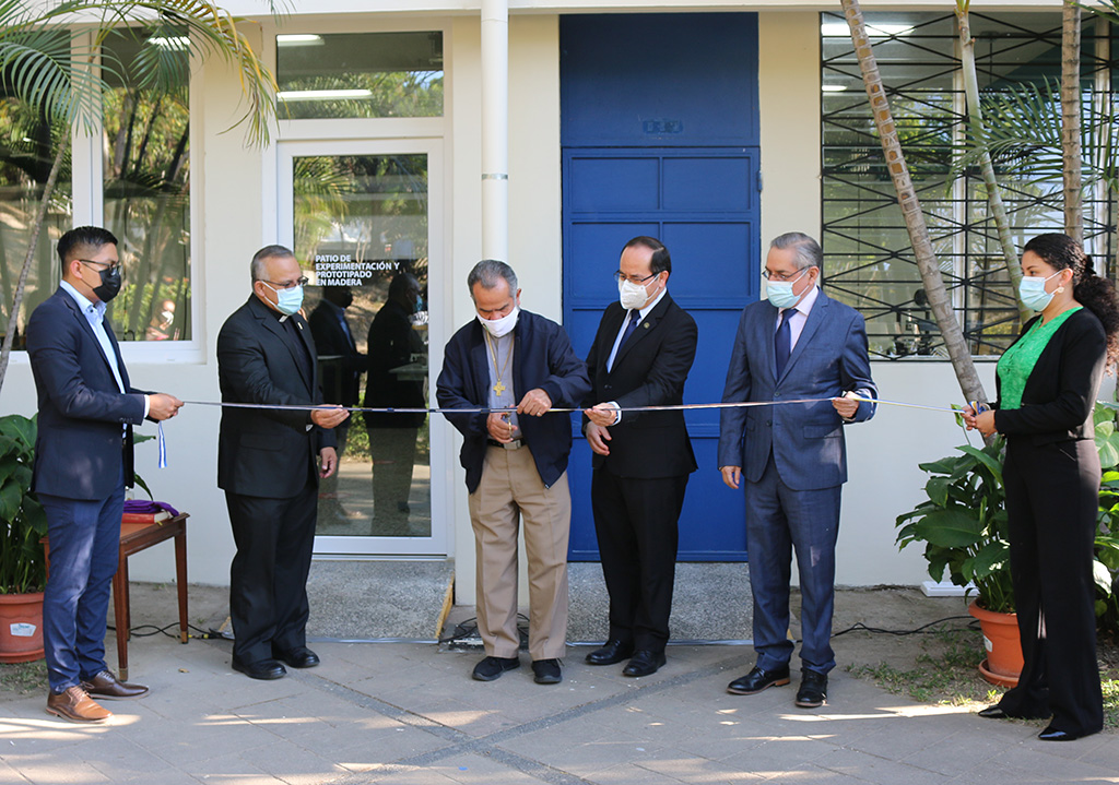 Soyapango, marzo 2022. - La Universidad Don Bosco inauguró el pasado 14 de marzo, los Patios de Experimentación y Prototipado, espacios que integran los nuevos laboratorios para la formación técnica y especializada de los estudiantes de la Licenciatura en Diseño Industrial y de Productos.