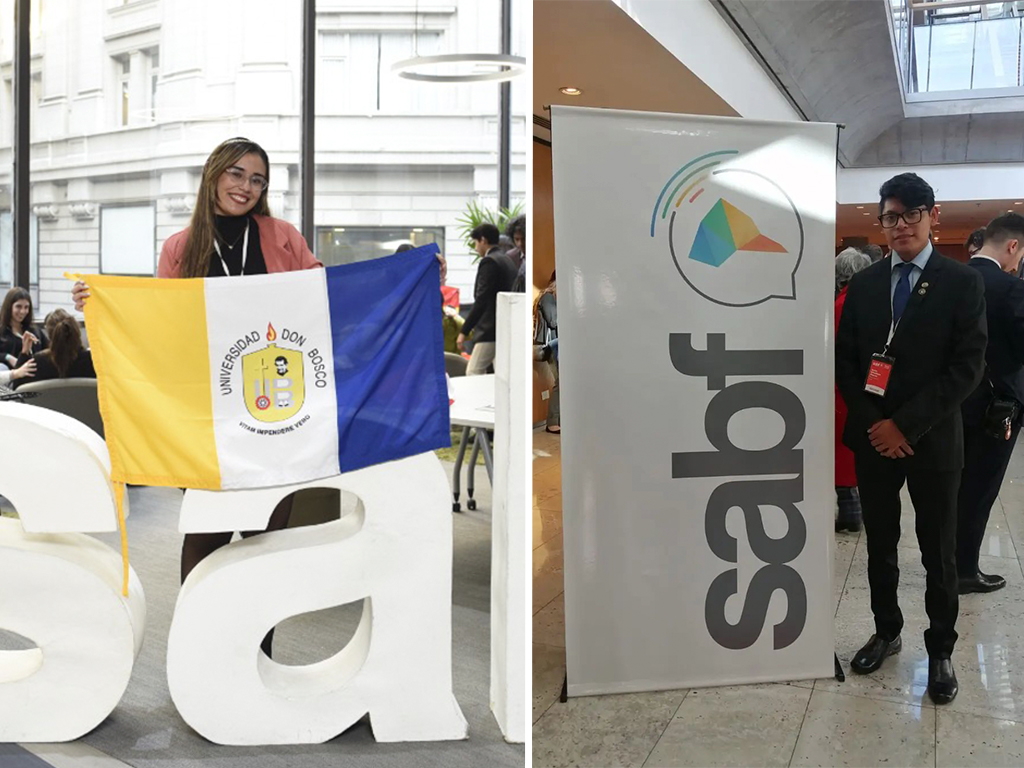 Soyapango, agosto 2022. - Nathaly Tejada, estudiante de Licenciatura en Diseño Industrial y de Productos junto a Edenilson García, graduado de Licenciatura en Ciencias de la Comunicación de la Universidad Don Bosco, participaron en el foro internacional South American Business Forum SABF, realizado en el Instituto Tecnológico de Buenos Aires, Argentina.