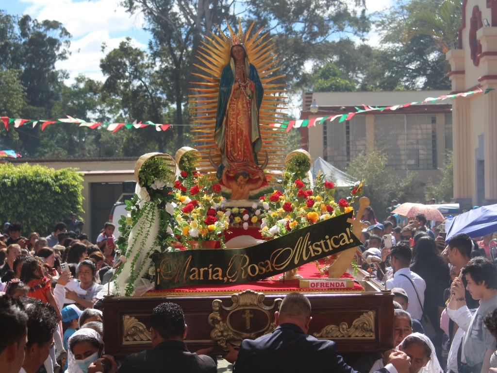 Ciudad de Guatemala, diciembre 2023. - El martes 12 de diciembre se celebró la fiesta de la Virgen de Guadalupe en la parroquia El Espíritu Santo, con la participación de todos los grupos consagrados a ella: Asociación de Devotos de la Virgen de Guadalupe, Convite Las Charcas, Moros y Cristianos, Loas y Disfraces.