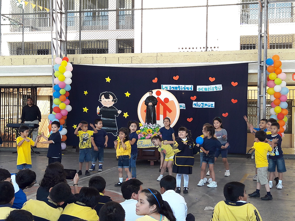 El personal docente y administrativo se preparó para la fiesta. Se decora el patio y se les da la bienvenida a los alumnos con canciones dedicadas al santo de los jóvenes, luego se hace la oración respectiva y la celebración de la eucaristía.