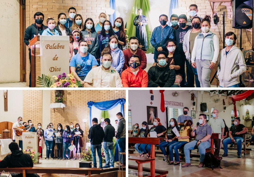 La Solemnidad continuó a las 5 de la tarde, con la Santa Eucaristía celebrada con algunos miembros del MJS, que, debido a la actual situación, tuvieron que reservar el espacio de participación con dos semanas de anticipación, se aprovechó el espacio para degustar una cena compartida con todos los presentes, mientras tanto, se proyectó el video del Aguinaldo Salesiano 2021 “Nos mueve la esperanza «Quiero hacer nuevas todas las cosas » (Apocalipsis 21,5)”.