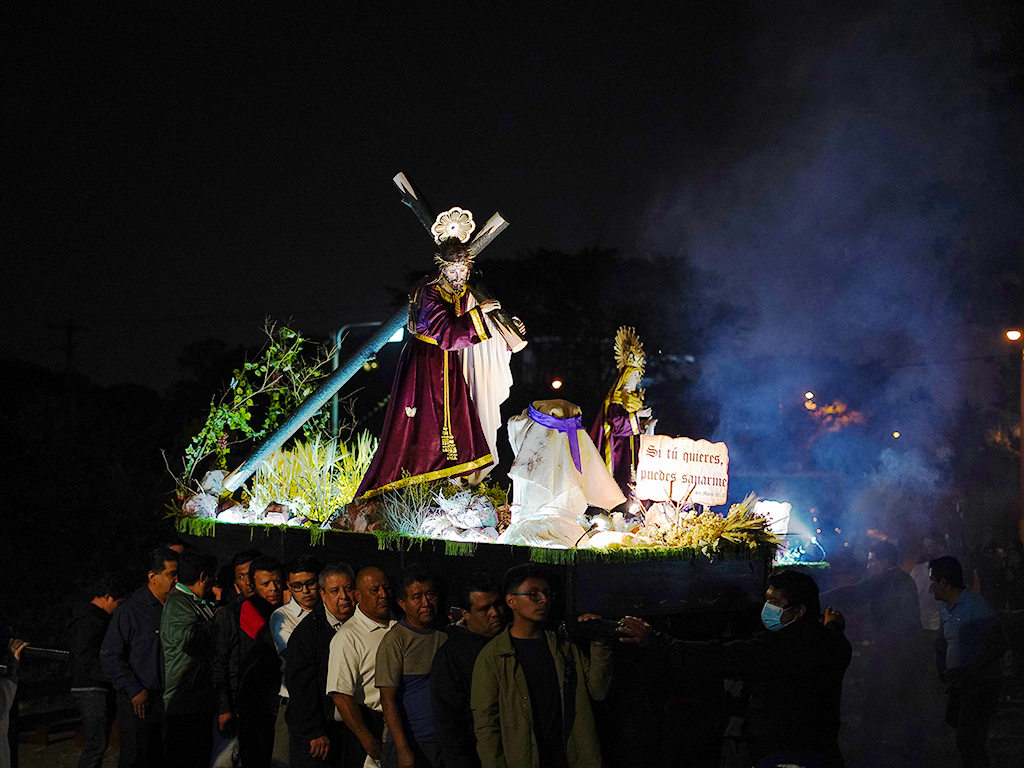 Ciudad de Guatemala, marzo 2023. - El viernes 24 se llevó a cabo el concierto de marchas fúnebres y procesión de las veneradas imágenes de Jesús Nazareno de las Charcas y Santísima Virgen de Dolores, que recorrió el parqueo externo e interno de la Parroquia El Espíritu Santo.