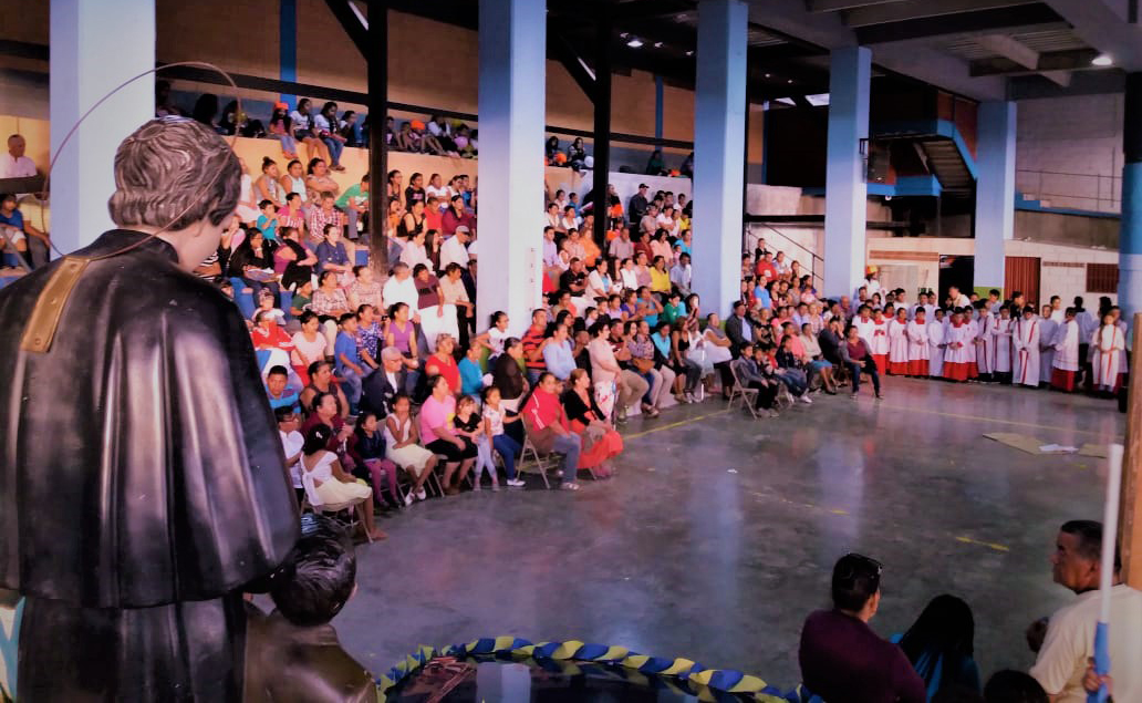Al llegar al Templo Parroquial, la sociedad de la alegría represento el sueño de los nueve años de Don Bosco, terminando con el mensaje “no con golpes, sino con mansedumbre”.
