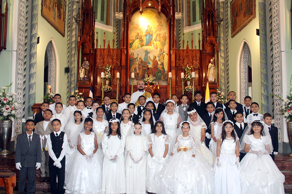 Granada, octubre 2018- El primer encuentro con Jesús Eucaristía en el Sacramento de la Comunión se produjo en la Capilla María Auxiliadora en donde 42 niños estudiantes del Colegio Salesiano recibieron el alimento espiritual en la Santa Misa dominical presidida por el P. Director, David Panezo, SDB.