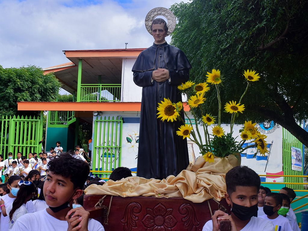 Masaya, febrero 2023. - Una gran fiesta salesiana en honor al padre, maestro y amigo de la juventud, Don Bosco, fue la que se celebró, el 31 de enero, con los alumnos de los turnos matutino y vespertino de la escuela Anexa San Juan Bosco.