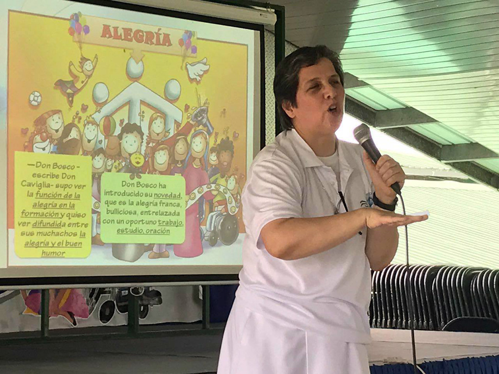 Alrededor de 140 docentes y coordinadores participaron en este encuentro. Con la colaboración de Sor Marianela Fernández Alfaro, FMA a través de una charla magistral, llena de mucha vivencia salesiana compartió el tema sobre “El ambiente pedagógico Salesiano”, resaltando los elementos educativos que favorecen la creación de un ambiente rico en propuestas para la vivencia del Sistema Preventivo de Don Bosco en las obras educativas tales como: la alegría, el acompañamiento, el ambiente de estudio, el protagonismo juvenil, el ambiente de acogida, la espiritualidad y el uso de las TICS.