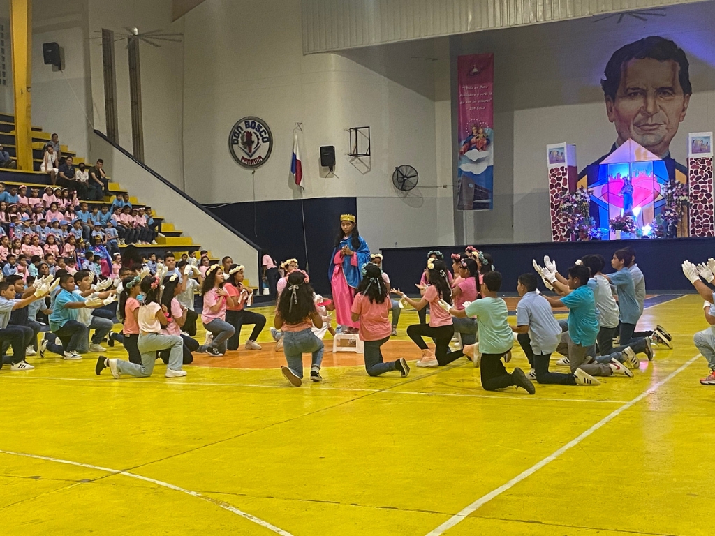 Panamá, mayo 2023. - El 23 de mayo en el gimnasio del Instituto Técnico Don Bosco se llevó a cabo las “Nochecitas Marianas”, homenaje que anualmente realizan los niños de la sección Primaria del Instituto Técnico Don Bosco en la víspera a la fiesta de María Auxiliadora.