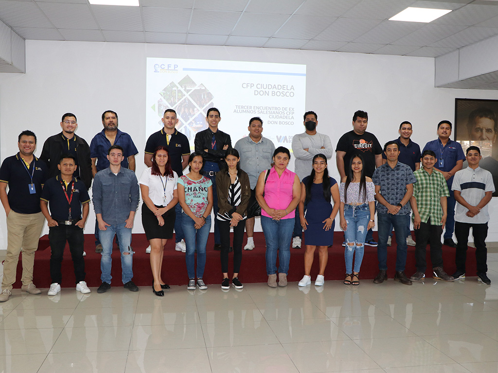 Soyapango, El Salvador, diciembre 2023.- El pasado 2 de diciembre se realizó en las instalaciones de Ciudadela Don Bosco el III encuentro de Exalumnos de nuestro Centro de Formación Profesional. Contamos con la participación de jóvenes de distintas promociones y carreras técnicas. Uno de los objetivos del encuentro fue el de presentarles la oportunidad de ser parte de nuestra base de datos para instructores de los cursos libres que brindamos como institución. También una de las metas de mantener activo y hacer crecer el grupo de exalumnos, es formar lazos para ayudar y acompañar a los futuros estudiantes del centro a través de diversas formas de apadrinamiento. Más fotos: aquí.