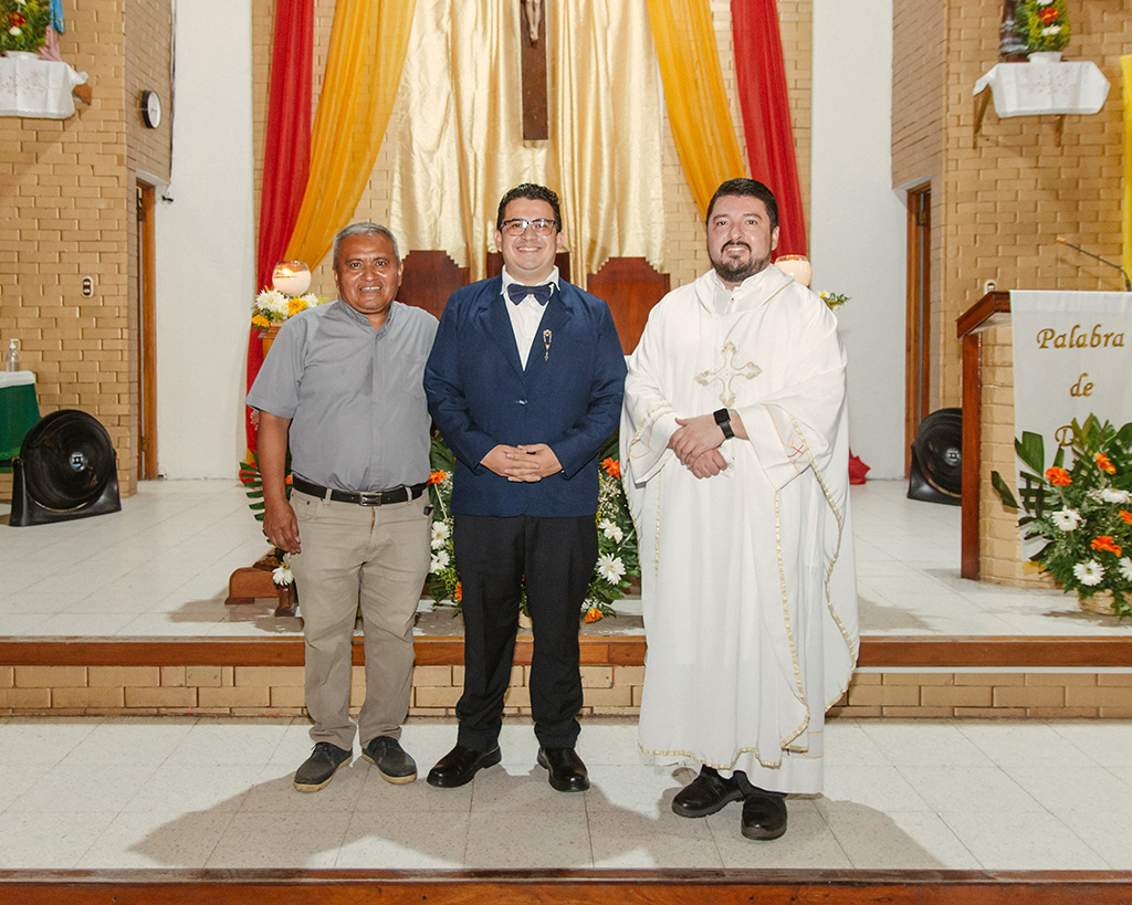 Petén, enero 2024. - El miércoles 24 de enero, fiesta de San Francisco de Sales, Eswin Arturo de Paz Lara realizó la promesa como Salesiano Cooperador del Centro en formación Luis Versiglia. La ceremonia se llevó a cabo en la parroquia San Benito de Palermo en San Benito, Petén, la Eucaristía fue presidida por el Padre Juan Gabriel Romero, delegado para la Pastoral Juvenil en Centroamérica, concelebró el P. Francisco Hernández, delegado local. Ese mismo día los demás Salesianos Cooperadores del centro realizaron la renovación de su promesa.