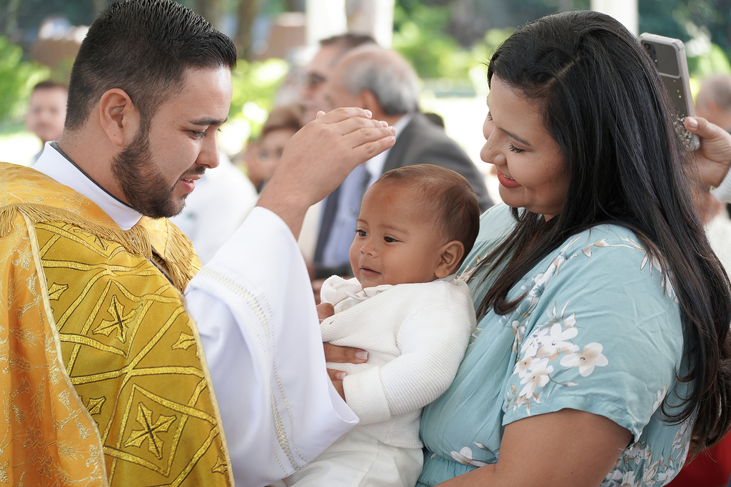 Ciudad de Guatemala, Guatemala, febrero 2024. - El pasado sábado, 24 de febrero, se realizaron los bautizos comunitarios en el Salón Campestre de la Parroquia El Espíritu Santo. Siguiendo el rito tradicional del bautismo, los pequeños fueron ungidos con el Crisma y el óleo de los catecúmenos, además de la imposición de manos, el signo de la cruz en sus frentes, oídos y boca, la vela sostenida por papás y padrinos y el agua bendita sobre sus cabezas. Más fotos: Aquí