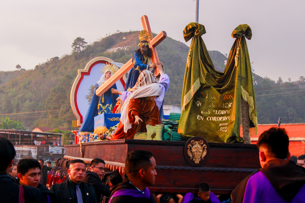 Guatemala, Carchá, marzo 2024.- El día domingo 17 de marzo, correspondiente al quinto domingo de Cuaresma la Asociación Caballeros y Damas de Honor de la Parroquia Salesiana de San Pedro Carchá realizaron la Solemne Procesión Mayor de Jesús Nazareno de la Misericordia y María Santísima de la Soledad Reina y Madre de Misericordia, recorriendo las principales calles del municipio. El mensaje de la alegoría del mueble procesional fue enfocado en el Aguinaldo Salesiano 2024 “Un corazón que transforma lobos en corderos” inspirado en el amor misericordioso de Dios que transforma corazones. Ver más fotografías aquí