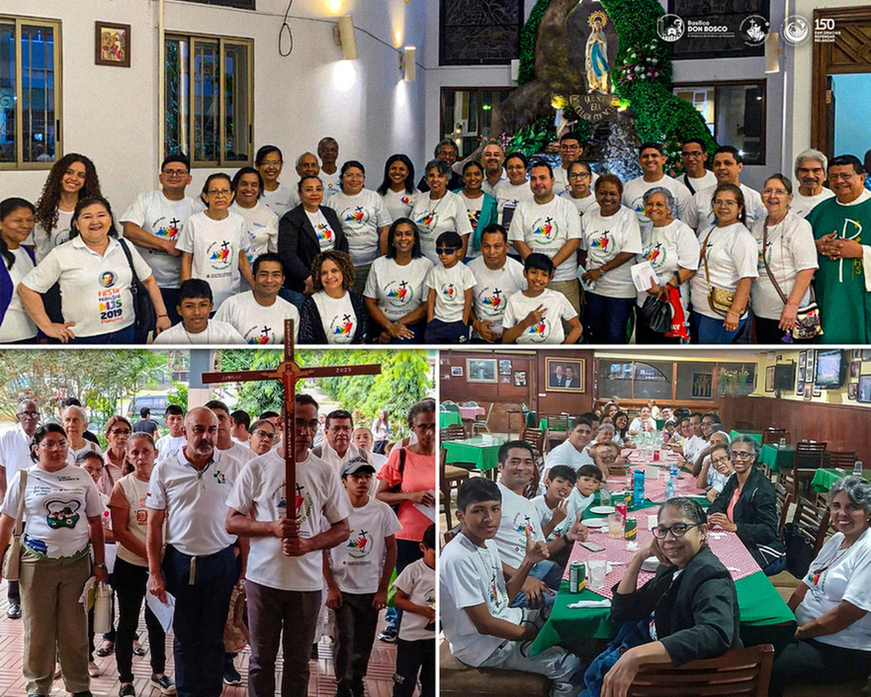 Panamá, octubre 2025. – Durante la tarde del sábado 04 de octubre los Peregrinación Jubilar a la Parroquia Nuestra Señora de Lourdes. La jornada estuvo marcada por momentos de oración, reflexión y fraternidad, destacándose la realización de tres estaciones durante el recorrido, en las cuales los participantes meditaron sobre el Proyecto de Vida Apostólica y su misión, profundizando en su compromiso con el carisma de Don Bosco y la labor pastoral en la comunidad. La peregrinación contó con el acompañamiento del padre Manuel Gómez, SDB, pastoralista de la Basílica Don Bosco, quien orientó a los participantes durante las meditaciones y reflexiones. La jornada culminó con una cena fraternal en un restaurante de la localidad, donde los participantes compartieron un espacio de convivencia, fortaleciendo los lazos de unidad y amistad entre los miembros del grupo.