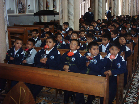 Quetzaltenango, mayo 2012.- El 15 de mayo se inició las festividades de María Auxiliadora con la Novena en la parroquia San Nicolás. A la eucaristía asistieron los Colegio Salesianos San Juan Bosco para varones y Liceo Guatemal.