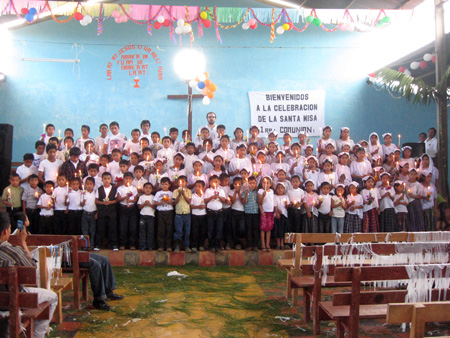 Guatemala, San Pedro Carchá, Julio 2012.- Sacerdotes salesianos prepararon a los niños para recibir el sacramento del a comunión. Las familias y niños celebraron en grande esta fiesta eucarística.
