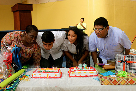 Panamá, mayo 2014.- Con mucho cariño, el Instituto Técnico Don Bosco celebró el cumpleaños del P. Director Miguel Cano SDB. Estudiantes, de todos los niveles, obsequiaron regalos muy especiales. Sorprendieron al Padre Miguel con el canto de "Las Mañanitas" por un grupo de mariachis. Se invitó a la prof Beverly de Alba, Fernando Fernández 11B y Blanca Benavides 8C para que participaran apagando las velitas, ya que también estaban celebrando su cumpleaños.