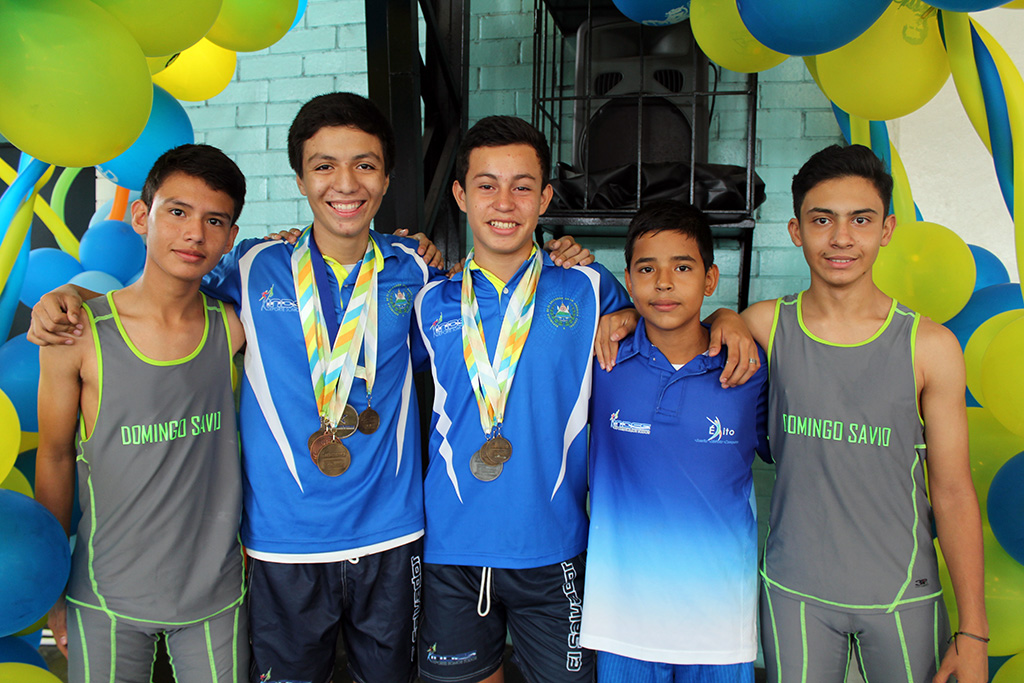 San Salvador, octubre 2015.- La Escuela Domingo Savio es un semillero de bueno deportistas. Este equipo de atletas ganó el primero, segundo, tercero y quinto lugar en los juegos estudiantiles departamentales. El joven Eduardo Higinio Alvarenga es el campeón en salto de altura, sub-campeón en salto de lonjitud y tercer lugar en bala. Otra joya deportiva es el jóven Juan José Laínez, campeón centroamericano en salto triple y primer lugar nacional en la misma categoría, además es el segundo lugar nacional en 100 metros planos.